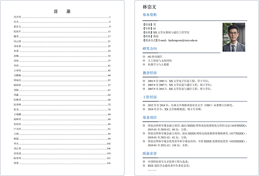 主要包含: 人才简介、学术头衔、教育经历、科研成果、所获奖项、科研团队、社会任职、代表性论文等。