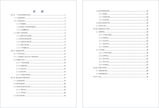 典型案例: 《XX产业专利大数据分析报告》、《XX行业/产业专利导航报告》、《XX领域专利技术分析报告》。