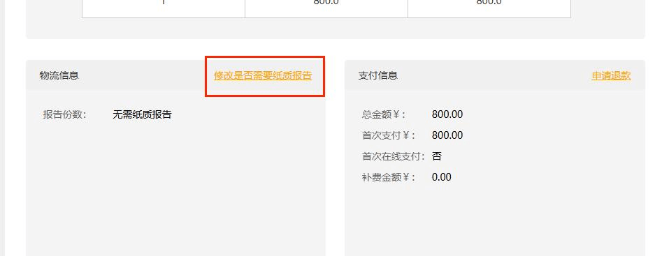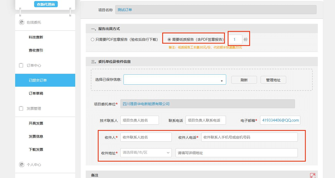 3、点击需要纸质报告,并修改需要的份数,填写收件人信息